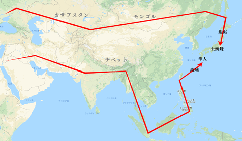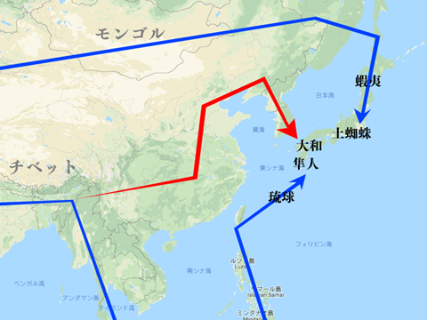 やがて弥生時代になると大陸から様々な民族が流れて行きますが、その中でもチベット方面から中国を経由して半島から日本に来たのがヤマト人。